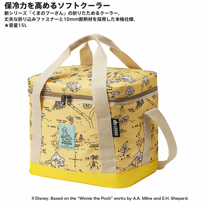LOGOS ロゴス アウトドア ディズニー くまのプーさん POOH ソフトクーラー 15L クーラーボックス 保冷 ランチバッグ お弁当袋 バッグ 手提げ ●保冷力を高めるソフトクーラー 新シリーズ「くまのプーさん」の折りたためるクーラー。