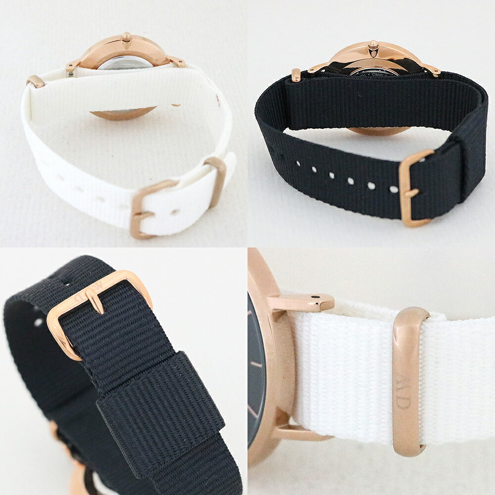 詳細 1.WH/PG/WH(DW00100309:DW00600309) 2.BK/PG/WH(DW00100310:DW00600310) 3.BK/PG/BK(DW00100150) 4.BK/SV/BK(DW00100151) 5.BK/PG/RubyRed(DW00100273:DW00600273) サイズ:(約)H36×W36×D6mm(ラグ、リューズは除く) 腕周り:最大(約)19cm、最小(約)12cm、重さ:(約)33g 素材:ステンレス(ケース)、ファブリック(ナイロンベルト) 仕様:クオーツ、3気圧防水 保証:1年 付属品 専用BOX、保証書、取扱説明書、バネピン外しツール ※時期によりデザイン・カラー・サイズなどが異なる可能性がございます。